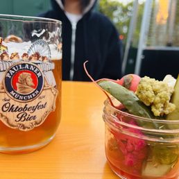 Vibey Biergarten outdoors next to the park in Hayes. Classic German beers in OG glasses with great little snacks to enjoy a sunny day. Kid friendly, upbeat music, and picnic tables to sit and chat with your friends. Foamy beer heads and good times, simple and straight forward.